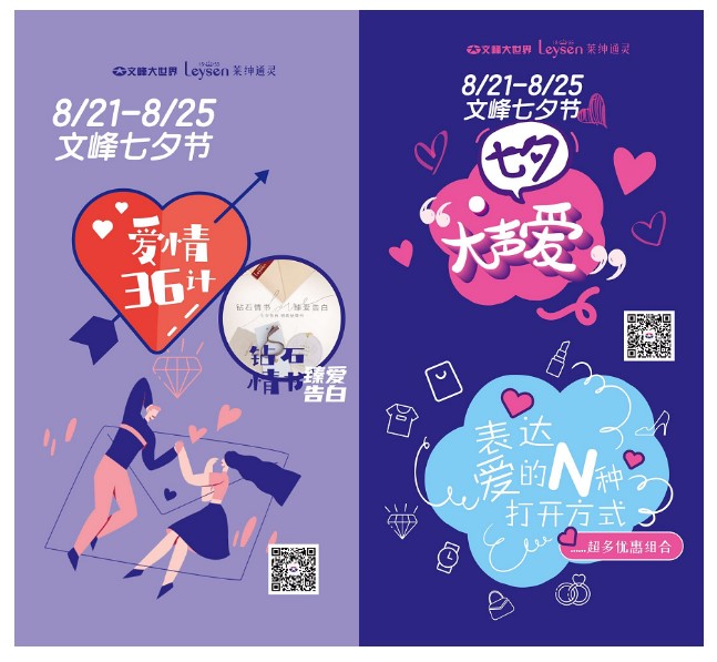 七夕期間,文峰大世界為顧客們準備了豐富多彩的活動。比如有結合七夕特有的情感基調,圍繞“表達愛的N種打開方式”、“描繪愛的N次怦然心動”、“喚醒愛的N重驚喜禮遇”、“啟迪愛的N種心靈感悟”、“燃爆愛的N種氛圍營造”、“提升愛的N種品質體驗”六個方面,推出以珠寶首飾、化妝品、服飾等商品為主的七夕優惠活動。還有結合各類超值禮遇,互動性強、接地氣的“七夕攻略寶典”狂歡派對活動,在線上還有超顏值CP直播帶貨。